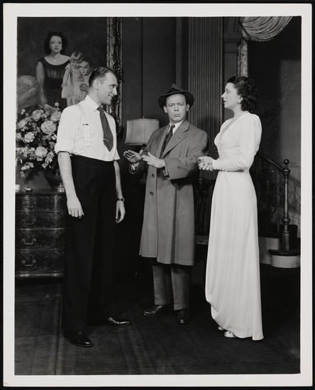 [Myron McCormick as Spike McManus, Kay Francis as Mary Matthews and Ralph Bellamy as Grant Matthews in "State of the Union".]