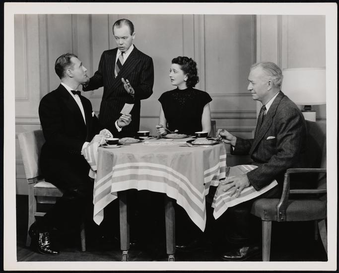 [Myron McCormick as Spike McManus, Ruth Hussey as Mary Matthews and Ralph Bellamy as Grant Matthews in "State of the Union".]