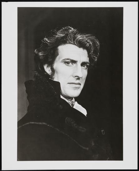 [Ann Sachs as Lucy Seward and Frank Langella as Count Dracula in "Dracula".]