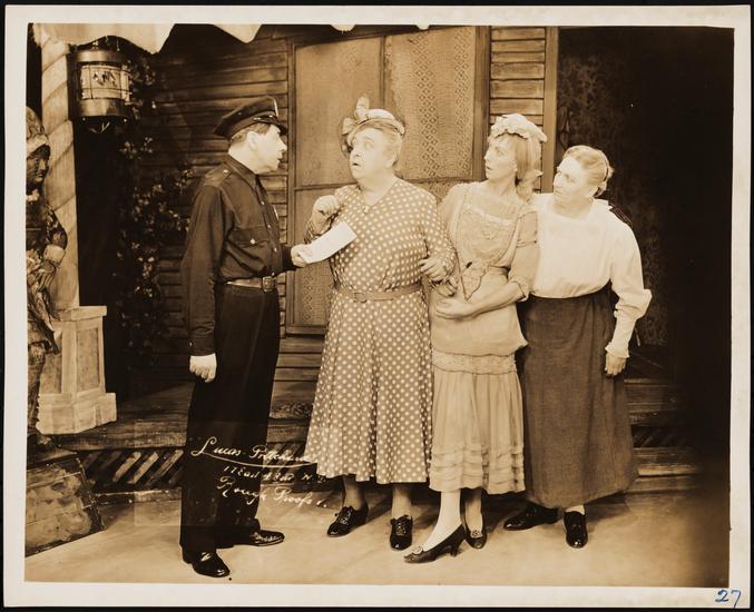 Description Possibly Herbert James as Policeman, Jane Darwell as Mrs. Feeley, Brenda Forbes as Miss Tinkham and Kasia Orzazewski as Mrs. Rasmussen.