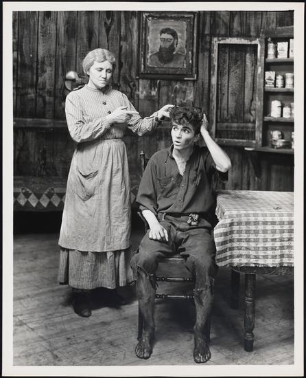 [Ervil Hart as Gram Calhoun and Jack Mathiesen as Mohawk in "Maid in the Ozarks".]