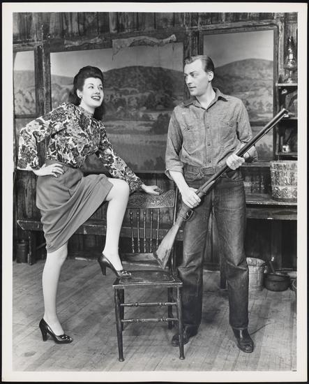 [Gloria Humphreys as Frances Tolliver and Jon Dawson as Temple Calhoun in "Maid in the Ozarks".]