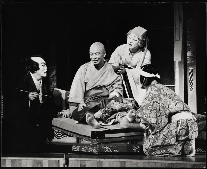 [Patrick Kinser-Lau as Shogun's Companion and Mako as Shogun in "Pacific Overtures".]