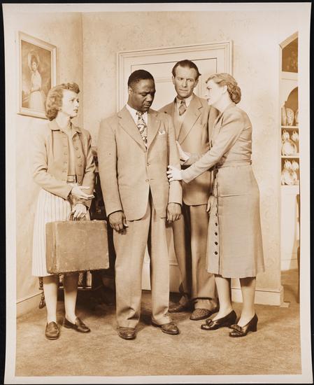 [Canada Lee as David Bennett, Perry Wilson as Toni Tilden, Ernestine Barrier as Kate Tilden and Will Geer as Ed Tilden in "On Whitman Avenue".]