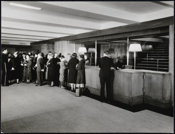 60 Wall Street [70 Pine Street]. Cities Service Company. Interior, information desk, main lobby