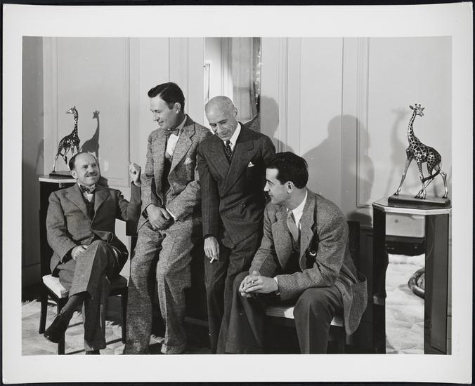 30 Rockefeller Plaza. GE Building. Interior showing group of men working on "Listening Habits Survey"