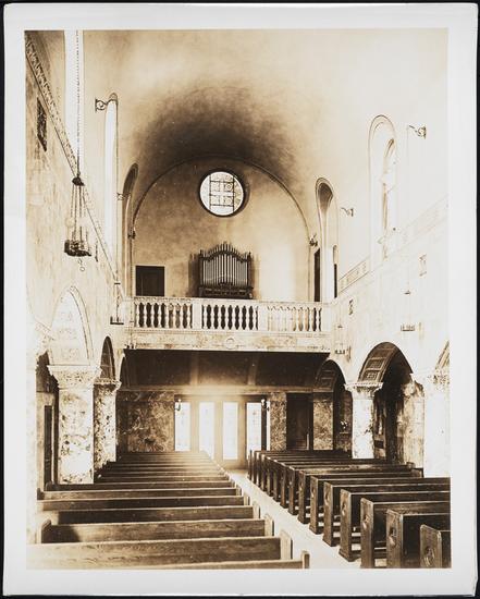 Wall Street and Broadway. Trinity Church. Interior, main church, screen across organ console