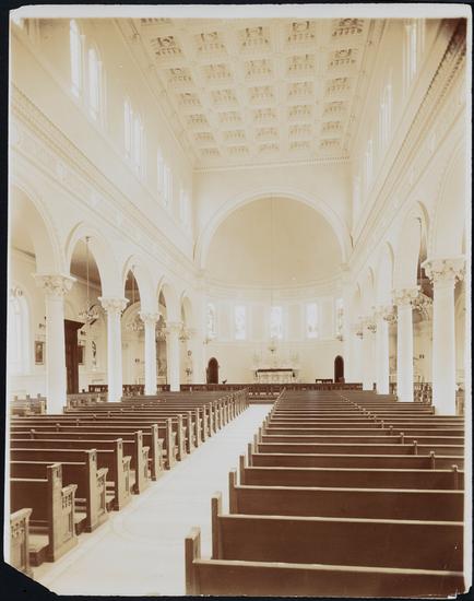 [Interior of unidentified church, view toward chancel.]