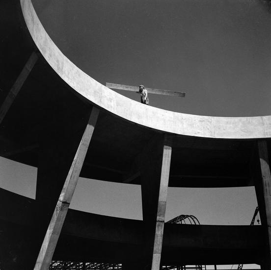 [Construction of the Ford pavilion's spiral driveway, New York World's Fair.]
