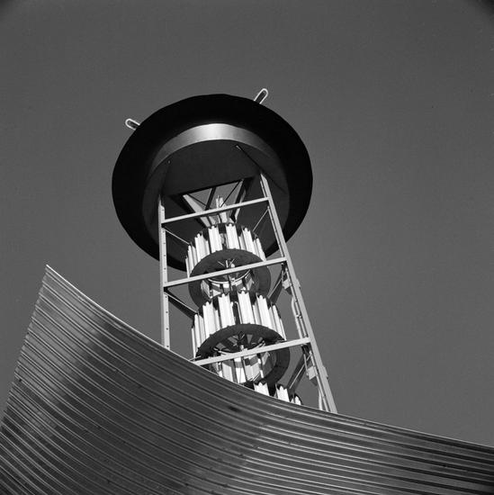 [Looking up at the tower of the Netherlands pavilion, New York World's Fair.]