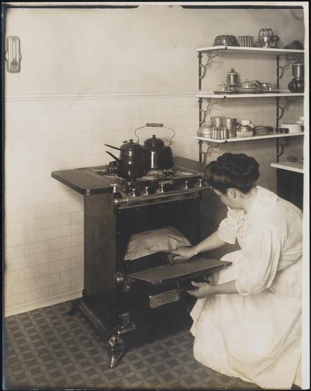 [Gas range with woman cooking.]