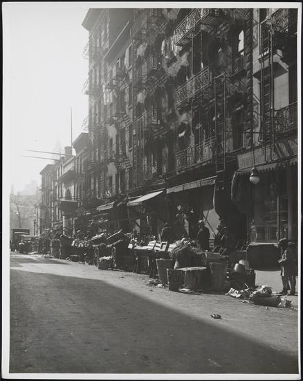 Essex Street, Lower East Side. Slums. People on street, dairy restaurants.