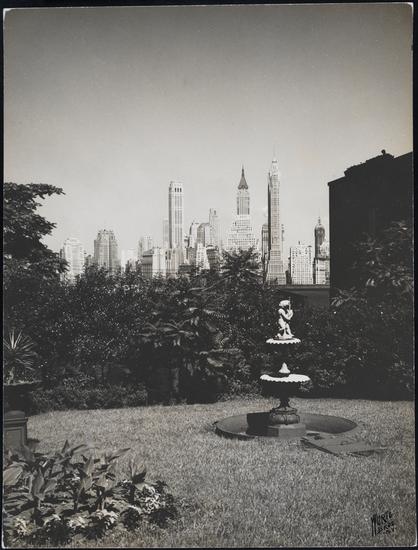 [Lower Manhattan skyline from yard.]