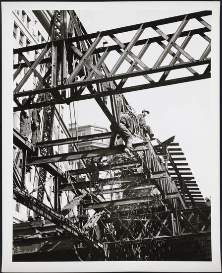 West 53rd Street and Sixth Avenue. Dismantling of the Sixth Avenue elevated train tracks.