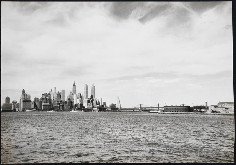 New York City views. Lower Manhattan from Governor's Island, house on left.