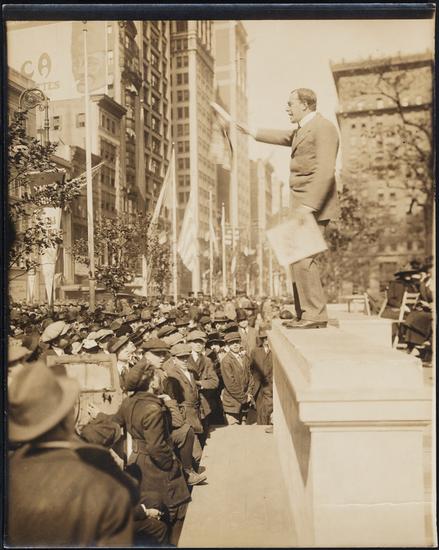 [Man speaking to a crowd.]