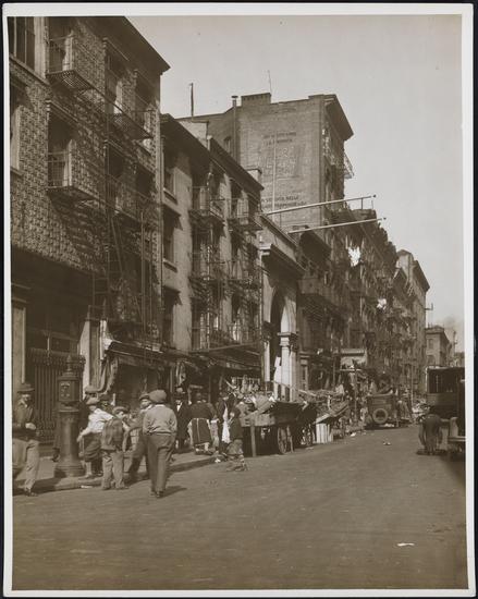Essex Street, Lower East Side. Slums. People on street, dairy restaurants.
