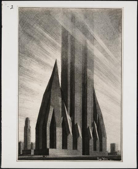 Watercolor rendering, sketch for seven-story building.
