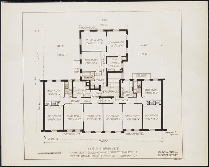 Typical floor plan [for an] apartment house in Jackson Heights, dated August 7, 1916.