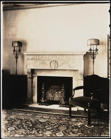 [Interior, detail of mantel.]