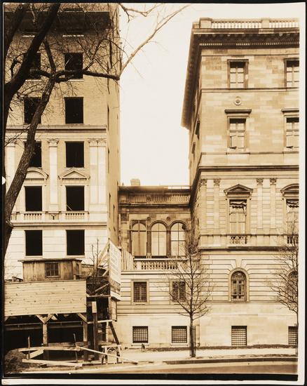 1 East 91st Street. Interior courtyard abutting 1107 Fifth Avenue, apartment building under construction