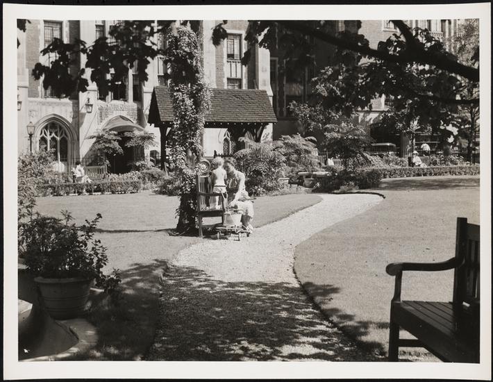 East 41st through 42nd Streets. Tudor city, playground and pool for children.