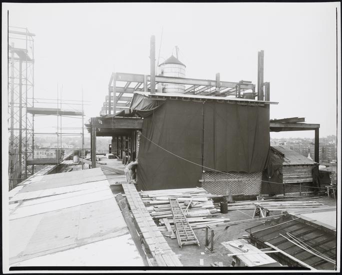 [New York World's Fair. Communications Building, tower. Construction view.]