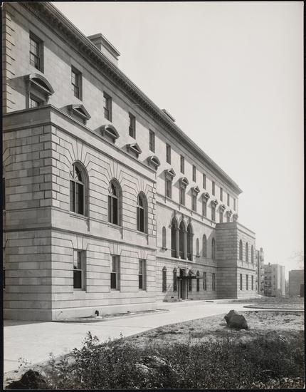851 Grand Concourse. Bronx County Courthouse. Detail of east corner of building
