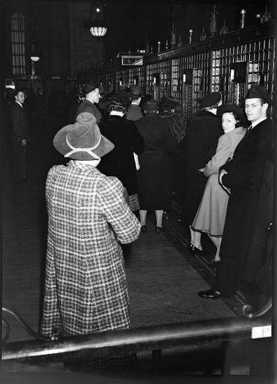 74 Wall Street. Seamens Bank for Savings. Interior, depositors cashing Christmas Club checks, also opening new accounts for 1940