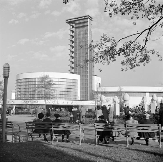 New York Worlds Fair. Glass Building. Fabricated glass display