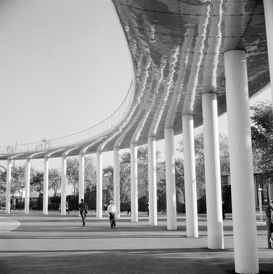 [Helicline between Trylon and Perisphere, New York World's Fair.]