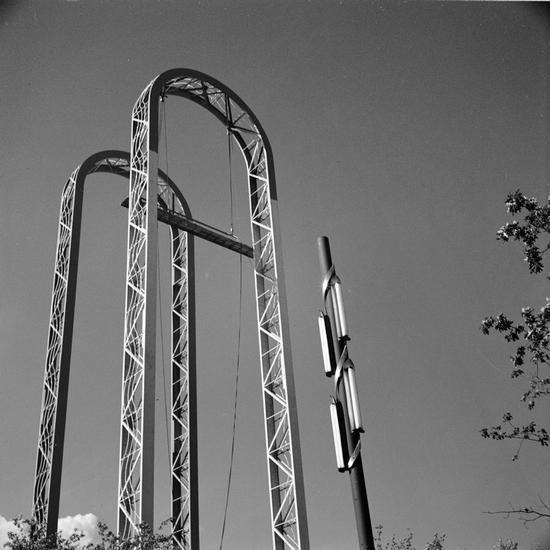 [Construction of the Textiles building pylons, New York World's Fair site.]