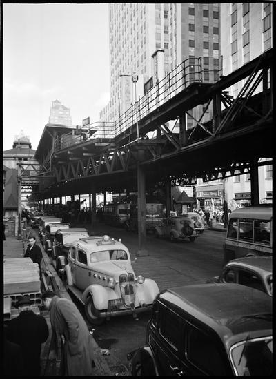 West 50th Street and Sixth Avenue. Rockefeller Center. View toward Radio City Music Hall and RCA Building