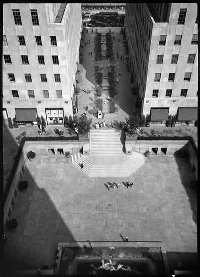 30 Rockefeller Plaza. View of garden plaza from GE Building