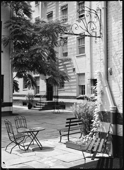 East 53rd Street and First Avenue. Sutton Manor Apartments. Birds-eye from fire escape of corner of courtyard