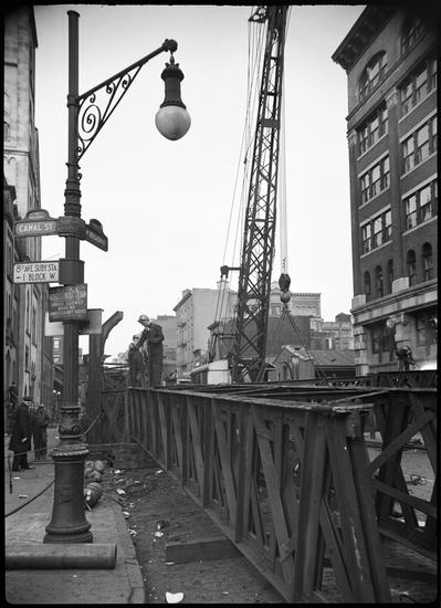 Canal Street and West Broadway. Dismantling of the Sixth Avenue elevated train tracks