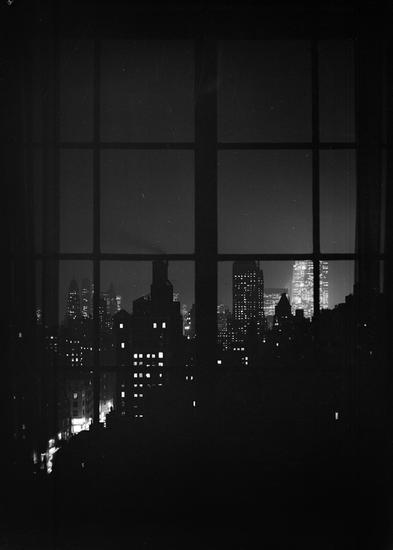 New York City Skyline At Dusk, East River, View From Pepsi-Cola Plant In Long Island City [Showing United Nations.]