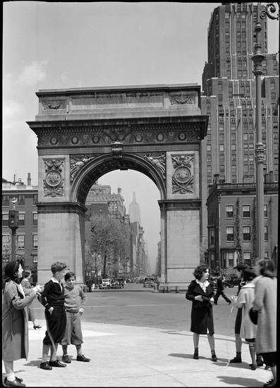 [Washington Square Arch with 2 Fifth Avenue and 1 Fifth Avenue in the background.]