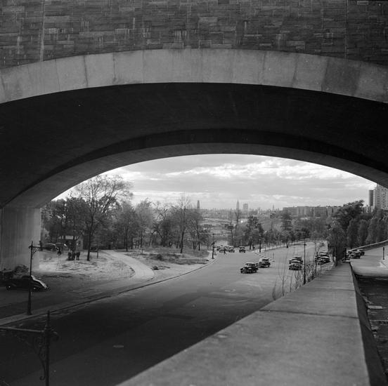 [The Empire State Building and Chrysler Building from St. Gabriel's Park.]