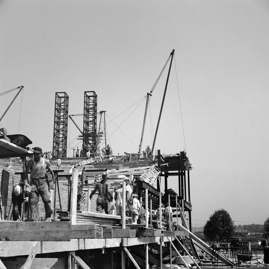 [Construction of the Perisphere and Trylon, New York World's Fair site.]