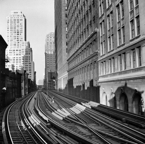 [Convergence of the Sixth Avenue and Ninth Avenue El train tracks.]