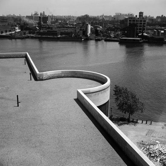 [View from a roof looking to the East River and the Triborough and Hell Gate bridges.]