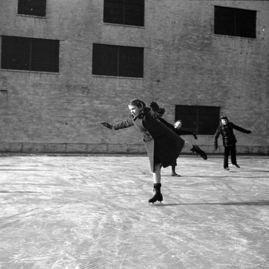 Chateau and Tower Apartments. Ice skating on frozen tennis courts