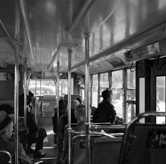 36th Street and Fifth Avenue. New York City Transportation Garage. Interior of bus one Otis proving stand