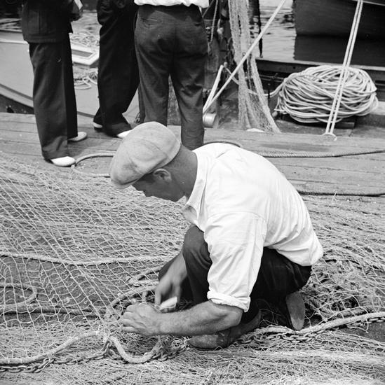 Wharf and fish nets, cat, oil painting by "Annot" Jacobi.