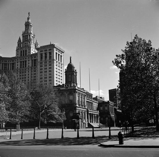 [New York north from Mail Street showing City Hall and Municipal Building.]