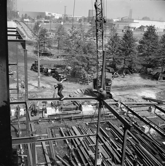 [Construction of the Perisphere and Trylon, New York World's Fair site.]