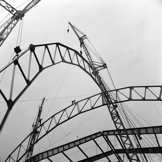 [Construction of New York World's Fair site. Detail of Production and Distribution building.]