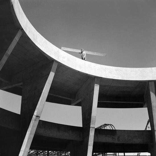[Construction of the Ford pavilion's spiral driveway, New York World's Fair site.]