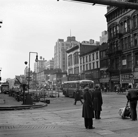 West 33rd Street and Sixth Avenue. View looking east [from Seventh Avenue] on 33rd Street showing Gimbels and Saks stores